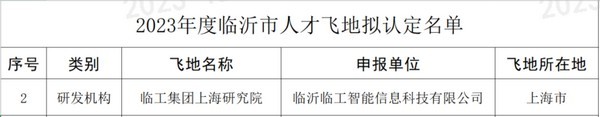 近日,临沂市科学技术局公布2023年度临沂市人才飞地认定名单,临沂中国·350vip8888智能信息科技有限公司成功入选。此次入选“人才飞地”是对公司在人才引进、培养以及研发创新方面的充分肯定和高度认可。